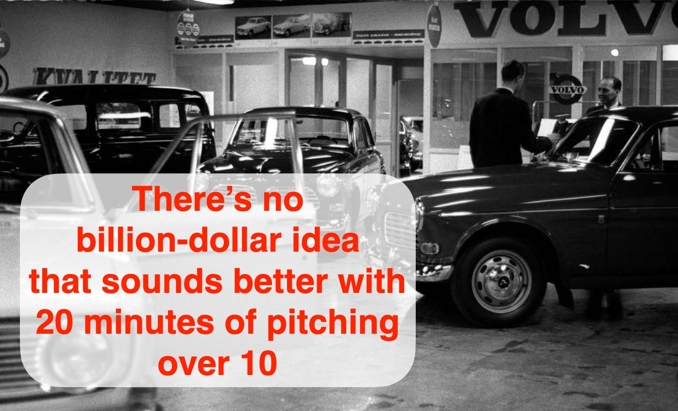 There’s no billion-dollar idea that sounds better or is more compelling with 20 minutes of pitching over 10.